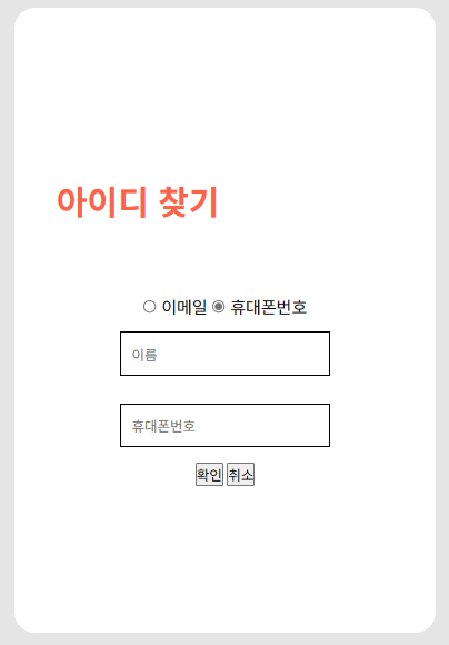 아이디 부분은 이메일 또는 휴대폰번호로 찾을수 있도록하였고,