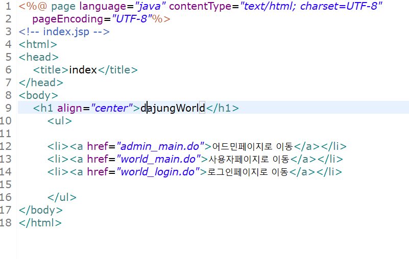 로그인과 회원가입페이지 없이 index.jsp 에서 바로 메인으로 갈수있게 설정해두었다.