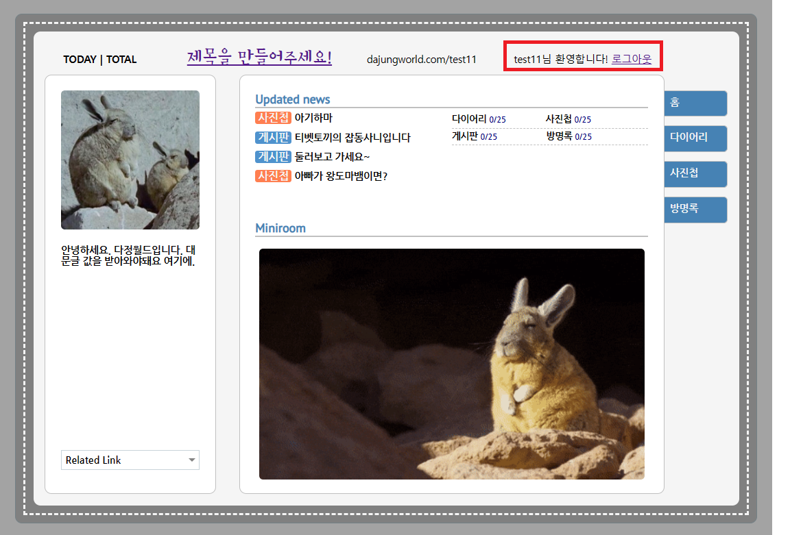 테스트용으로 로그인화면을 만든후 보이는 첫메인화면을 띄워봤다.
