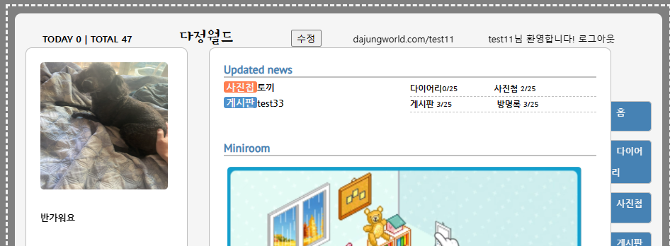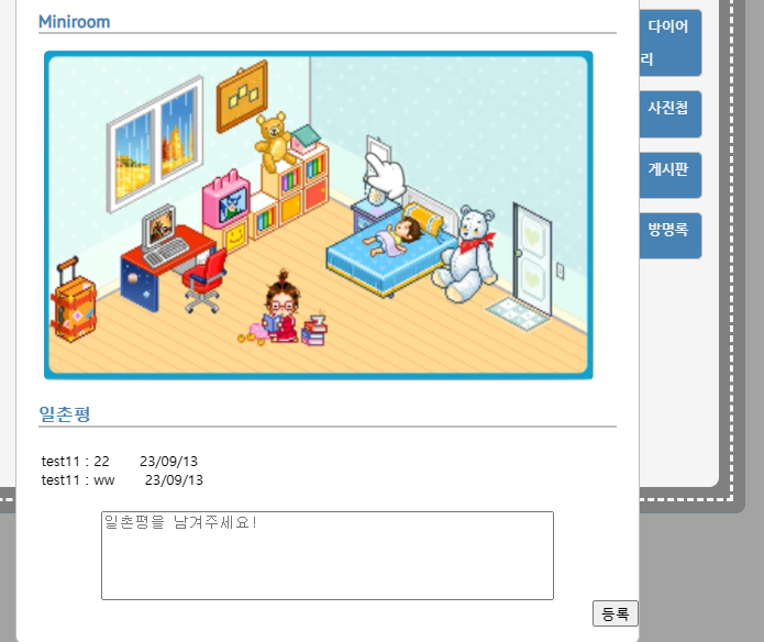 싸이월드 대문에 보면 미니룸 하단에 일촌평을 남길수있게 구현이 되어있어서 뒤늦게 확인하고 만들었다.
