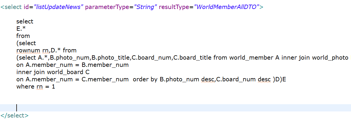 한 jsp 내에서 모든 테이블의 값들을 불러와야하기때문에, 당연하게 join을하여 해당 title컬럼만 가져오면 된다고 생각했으나, parameter null 값이 발생하여 원인을 찾지못하고, rownum을 활용하여 구현하였다.