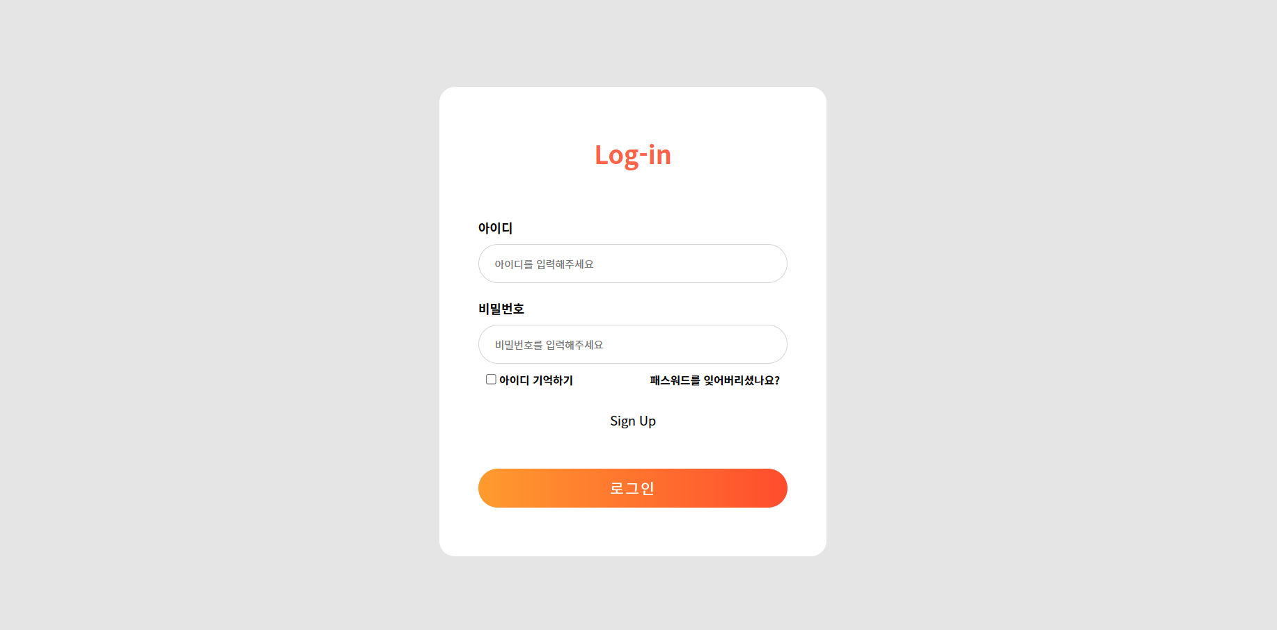 입맛에 맞춰 위와 같이 만들었으며, sign up을 누를경우 회원가입 페이지로 넘어갈수 있게 하였다.
